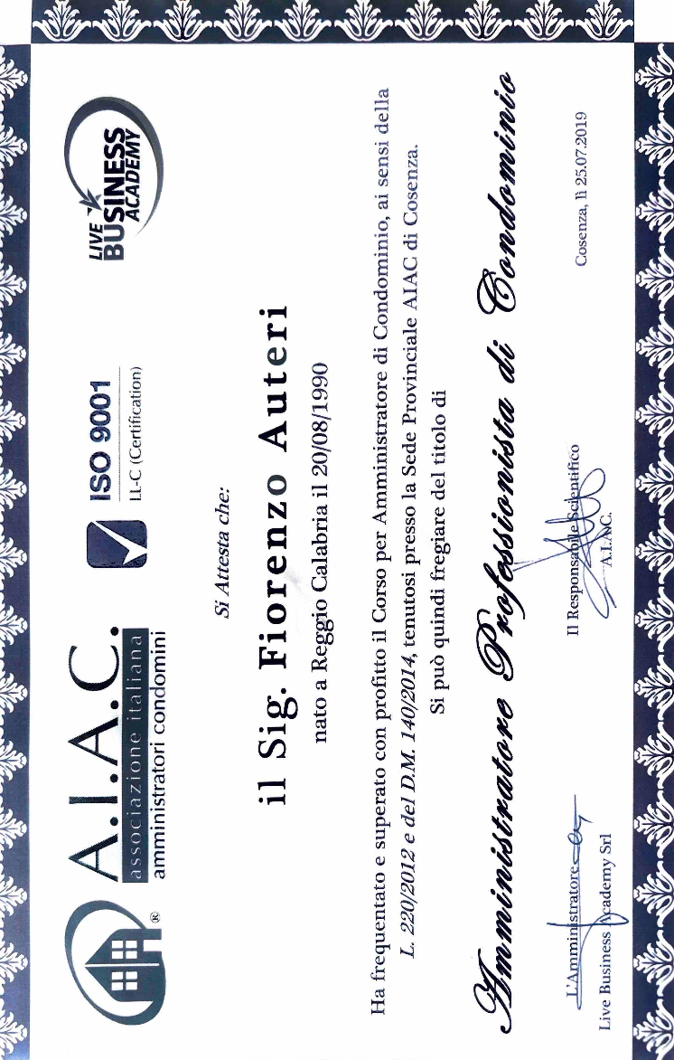 Il mio nome è Fiorenzo Auteri, vivo a Cosenza ed esercito la professione di Avvocato.